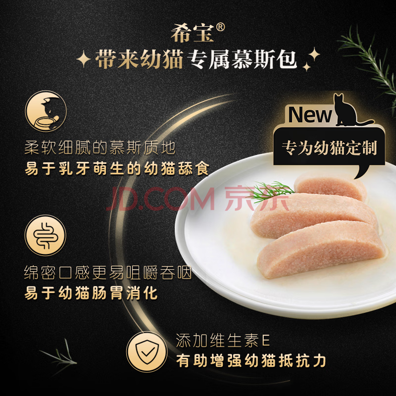 商品相册:希宝幼猫零食鸡肉口味慕斯猫湿粮软包罐头70g*24包第