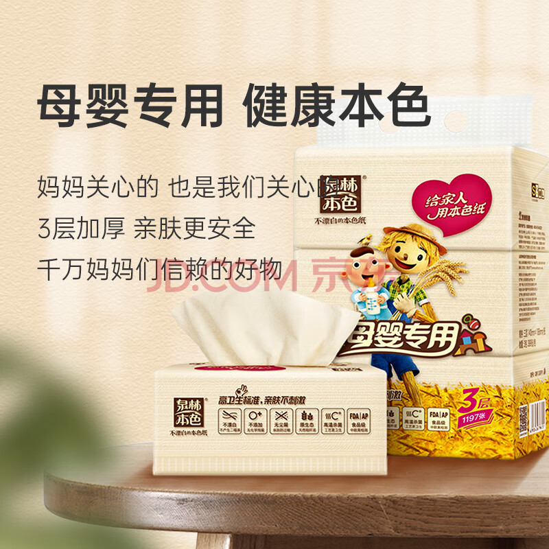 商品相册:泉林本色亲肤抽纸 3层133抽*15包整箱批发宝宝纸巾婴儿面巾纸卫生纸餐巾纸第