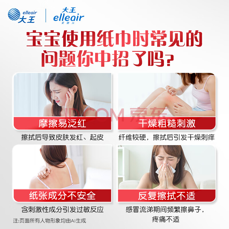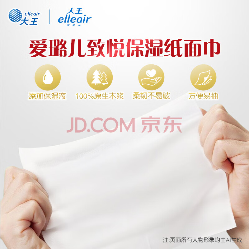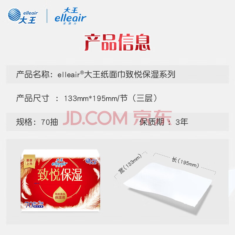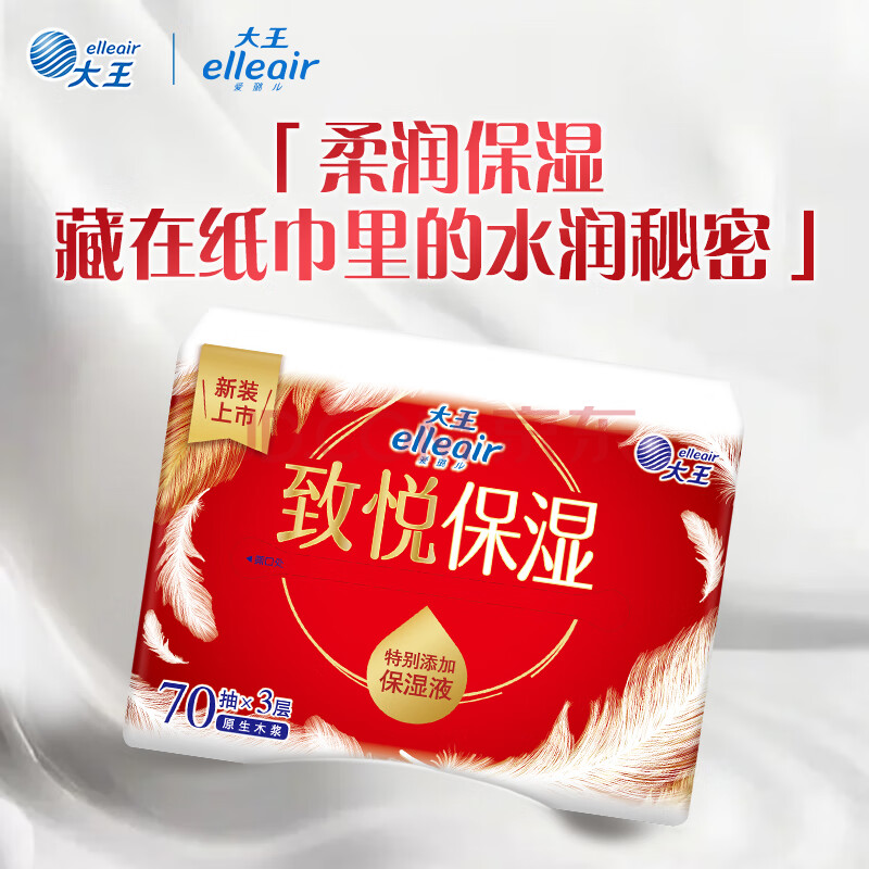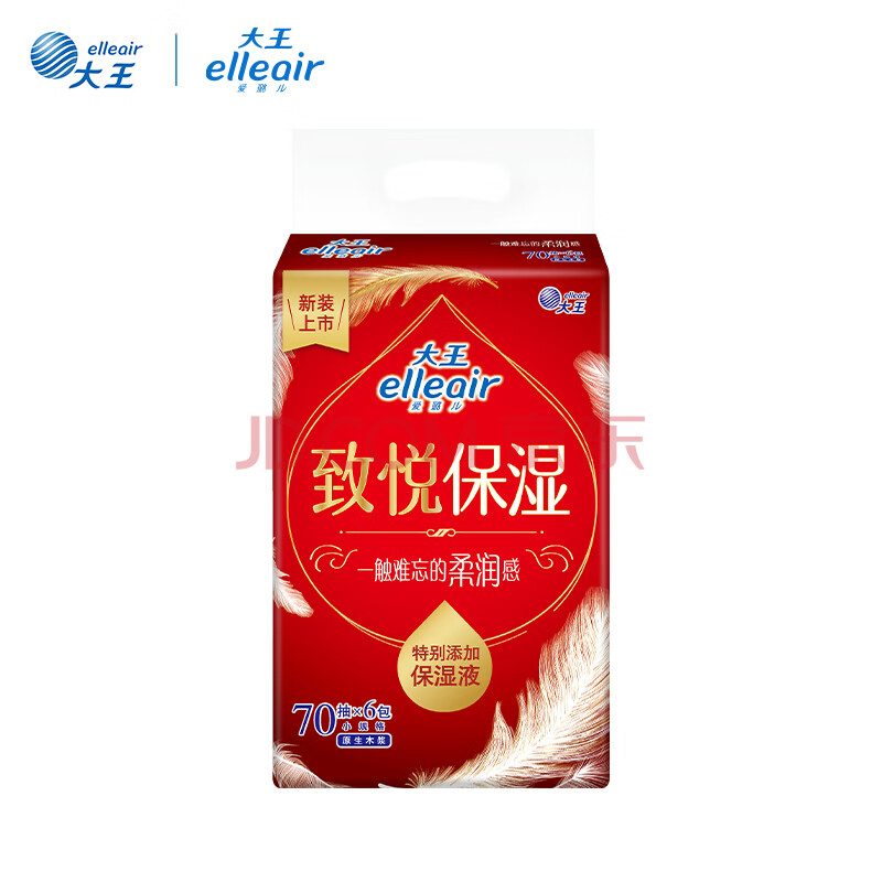 商品相册:elleair大王致悦保湿纸柔纸巾云柔巾乳霜纸含甘油适用敏感肌3层70抽*6包第