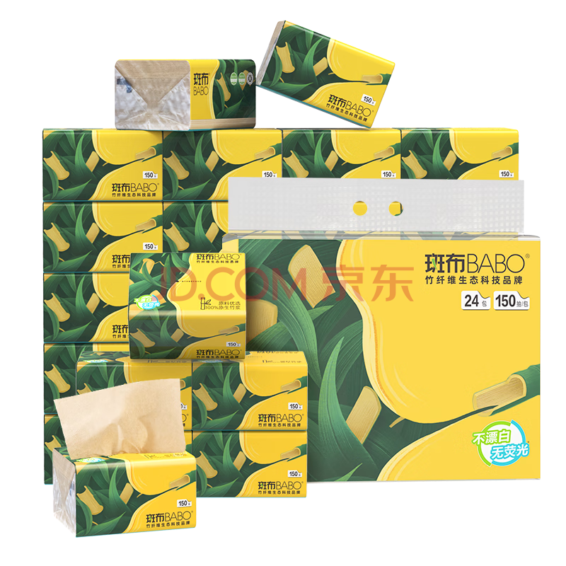 商品相册:斑布抽纸 3层150抽*24包 加大S码 原生竹浆 纸巾 卫生纸 餐巾纸 第