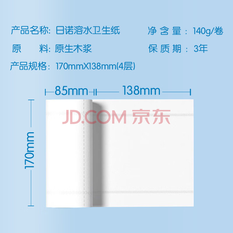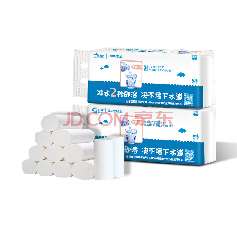商品相册:日诺(Rinuo)可冲水卫生纸水溶性无芯卷纸卷筒纸厕纸纸巾4层140克 2提20卷第