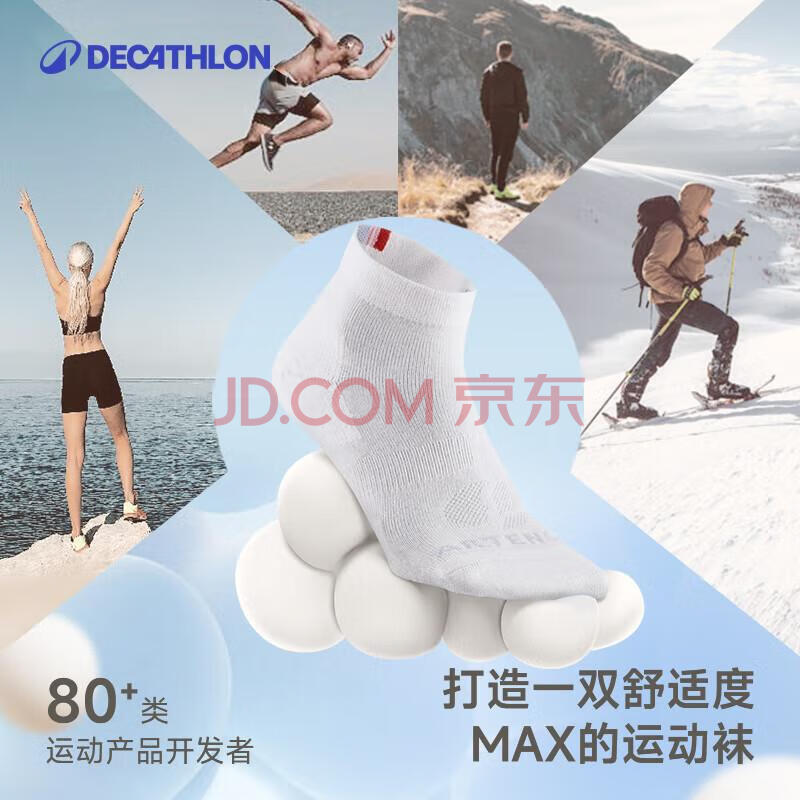商品相册:迪卡侬成人跑步休闲健身舒适运动袜RS160三双装高帮袜 2415066第