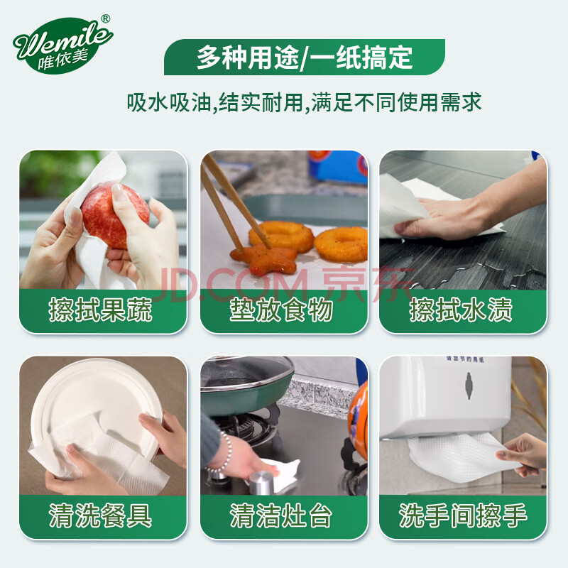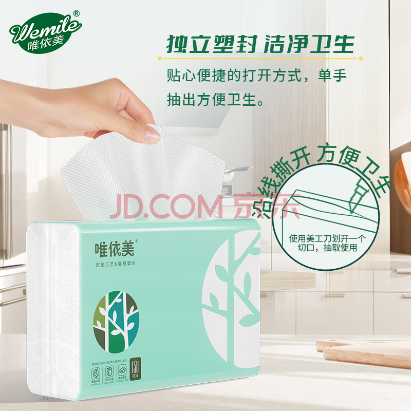 商品相册:唯依美擦手纸单层150抽*8包商用干手纸抹手纸厨房吸油吸水 整箱VS6212第