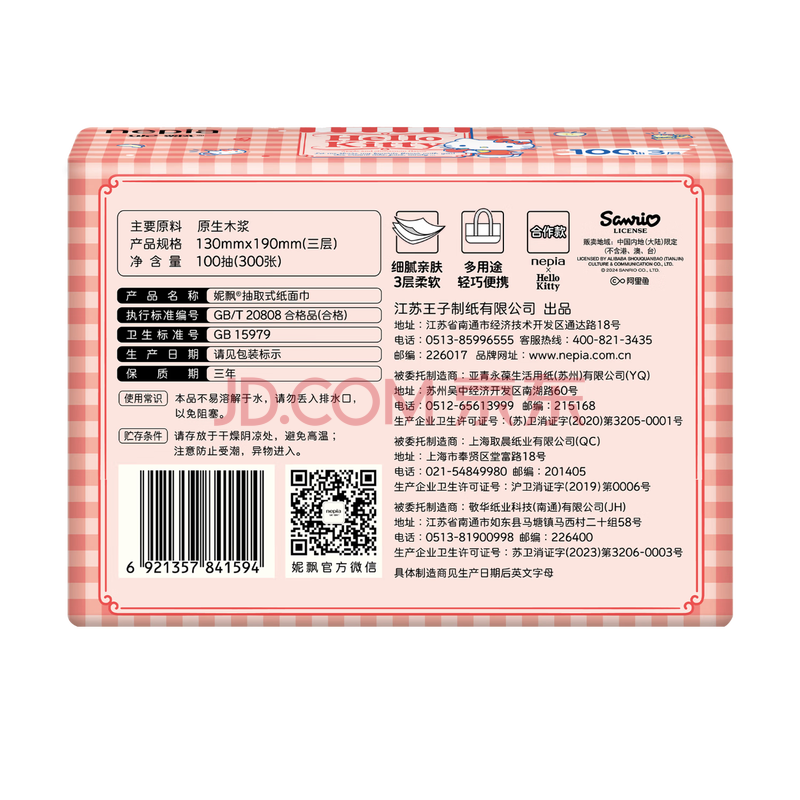 商品相册:妮飘(Nepia)凯蒂风味抽取式面纸儿童家用抽纸餐巾纸3层加厚100抽*30包整箱第