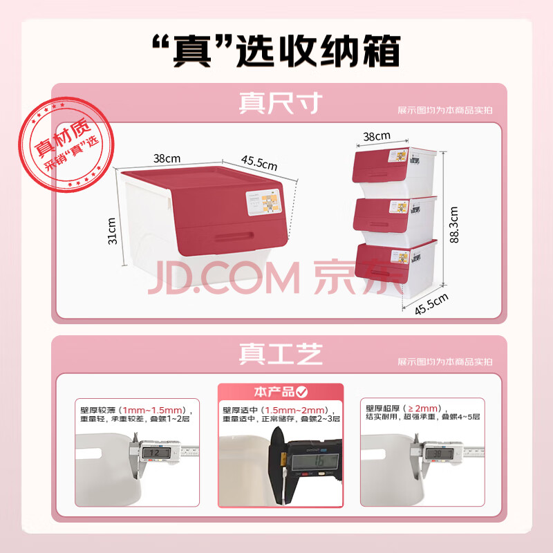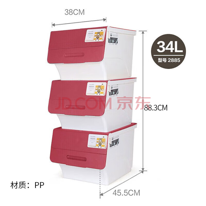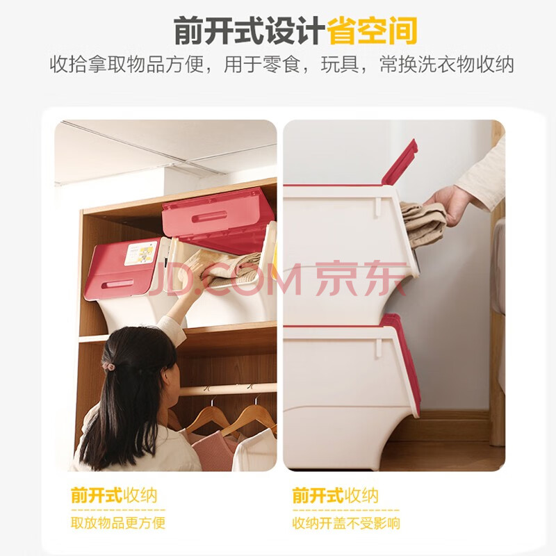 商品相册:茶花塑料衣物收纳箱棉被整理箱34L 红色 3个装第