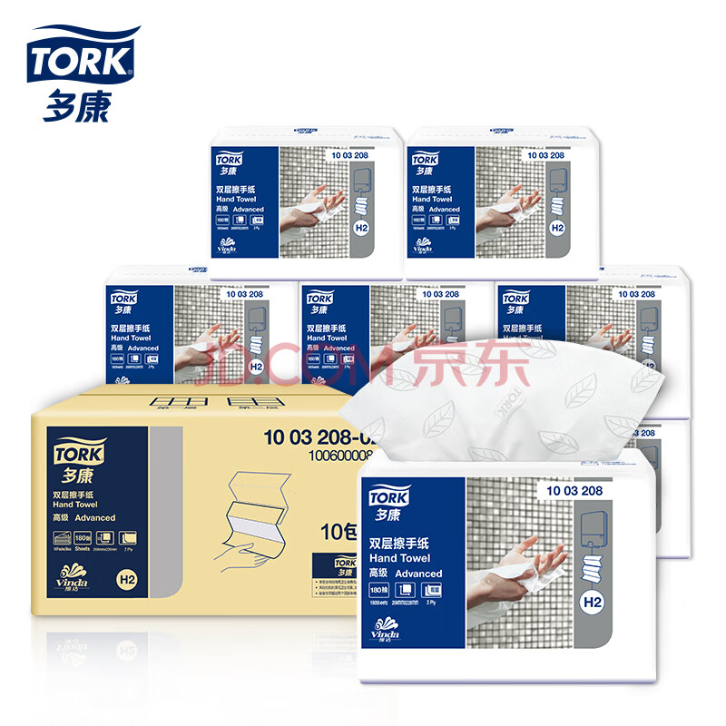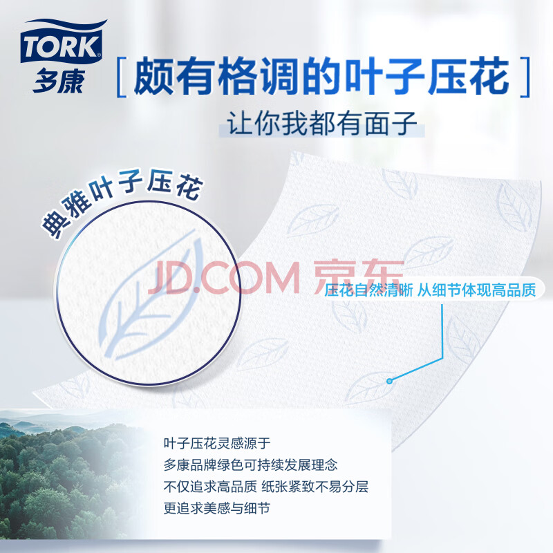商品相册:多康擦手纸双层 180抽*10包叶子压花 酒店厨房餐厅卫生间 整箱销售第