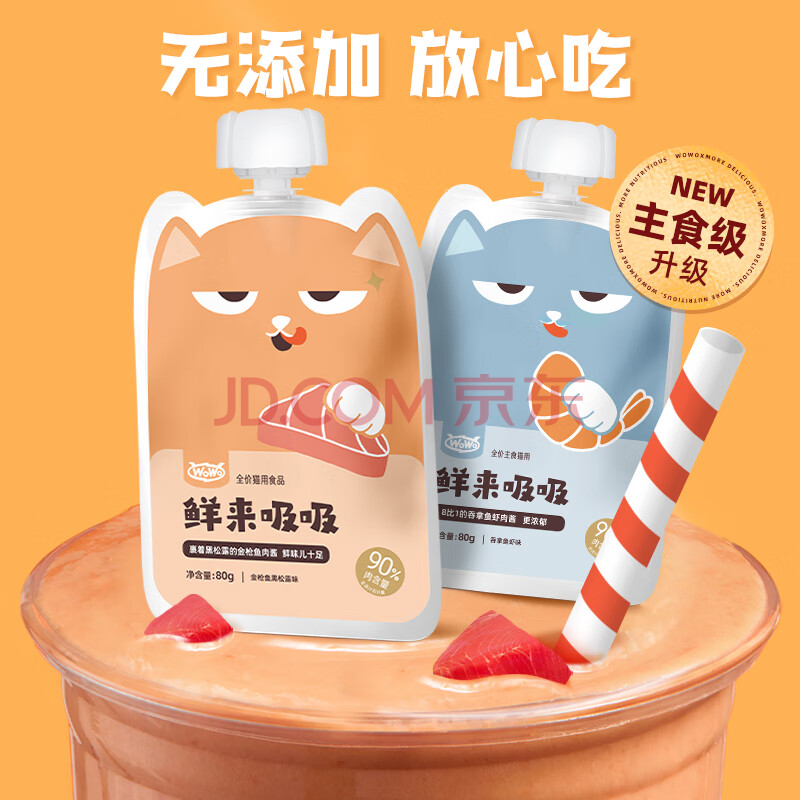 商品相册:WOWO猫条猫零食 猫湿粮鲜来吸吸吞拿鱼虾金枪鱼黑松露6袋咕噜酱第