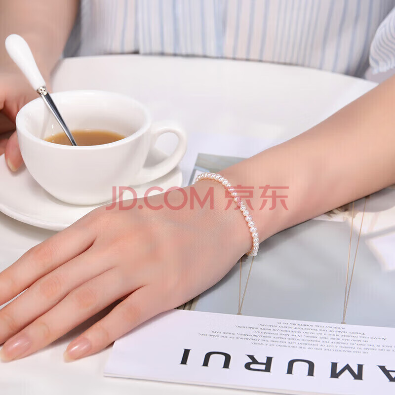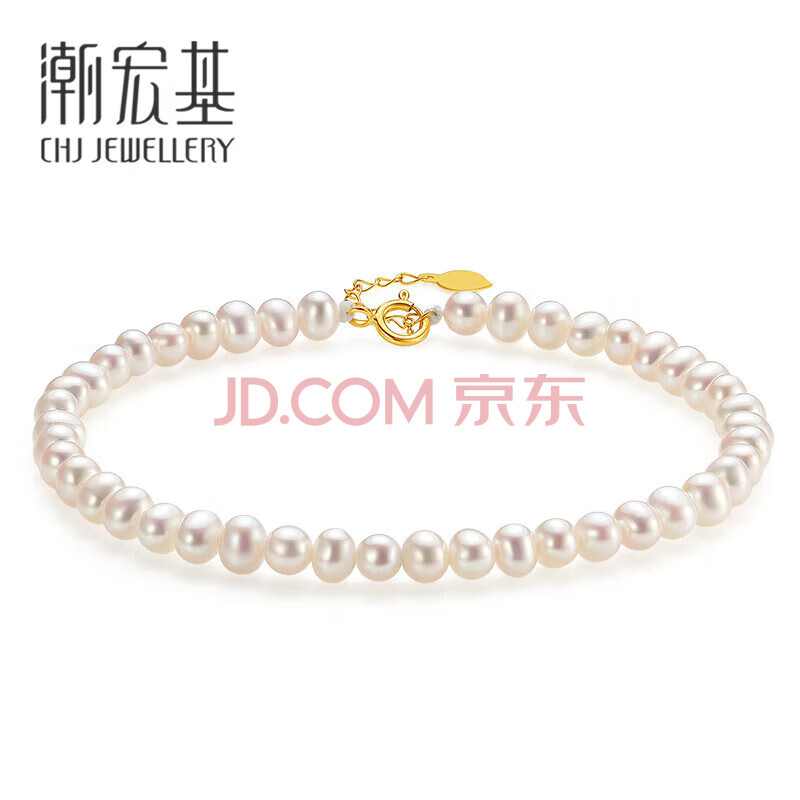 商品相册:潮宏基黄18K金珍珠手链女手串淡水珠送女友生日礼物 约16cm加尾链第