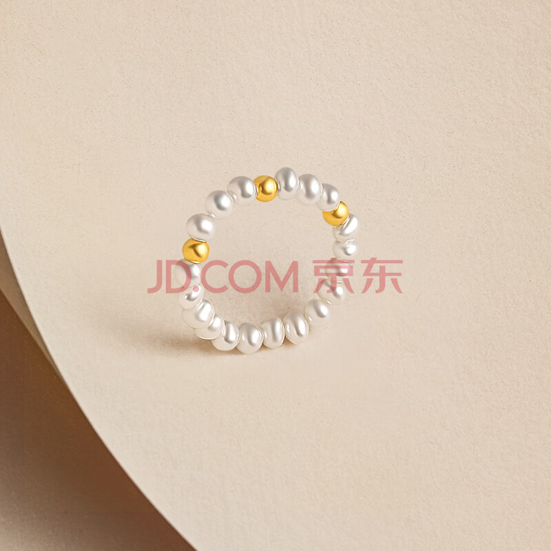 商品相册:周六福黄18K金珍珠戒指女 ins风彩金戒指 单颗金珠 生日礼物第