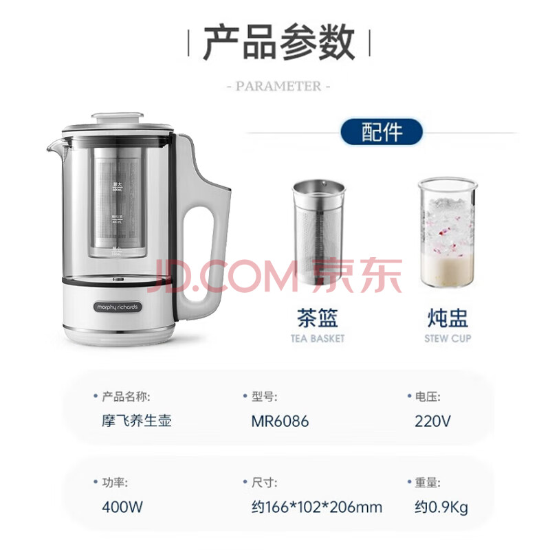 商品相册:摩飞电器(Morphyrichards)全自动养生壶 便携煮茶器 办公室多功能烧水壶养生杯煮茶壶热水壶 MR6086 椰奶白第