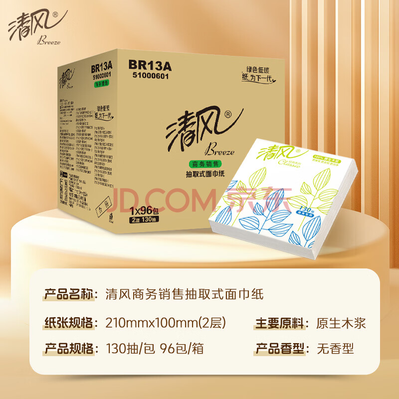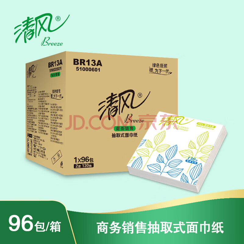 商品相册:清风抽纸 擦手纸2层130抽*96包 餐巾纸酒店餐厅专用纸巾纸抽整箱批发第