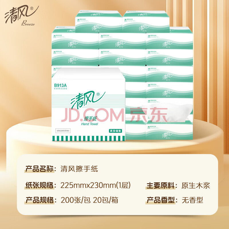 商品相册:清风抽纸 擦手纸单层200张*20包 酒店商场洗手间厕所整箱批发商务专用第
