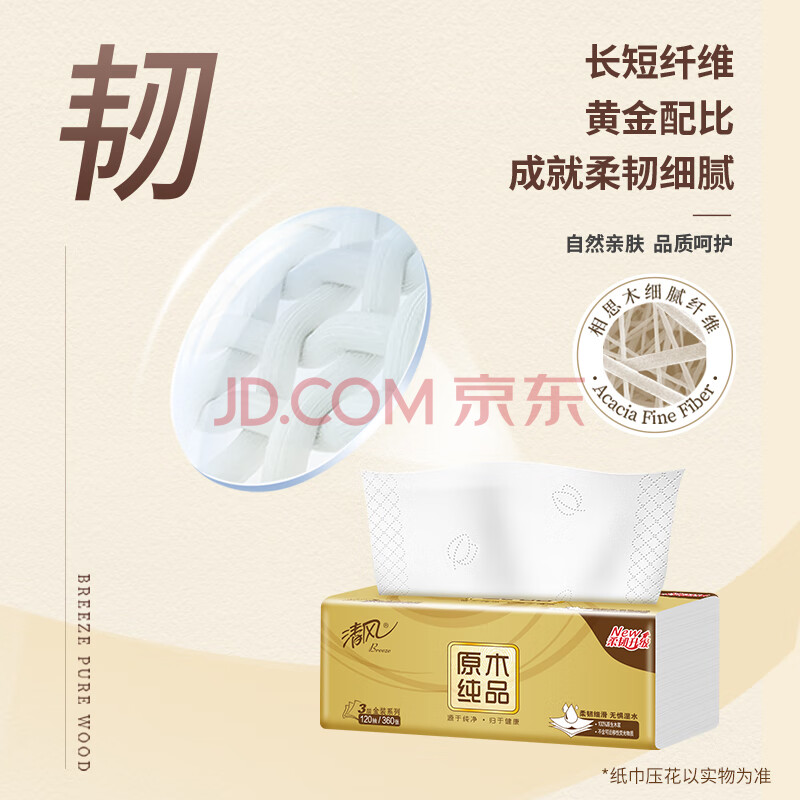 商品相册:清风抽纸 金装厚韧3层120抽*24包 可湿水 纸抽 卫生纸面巾纸 整箱纸巾第