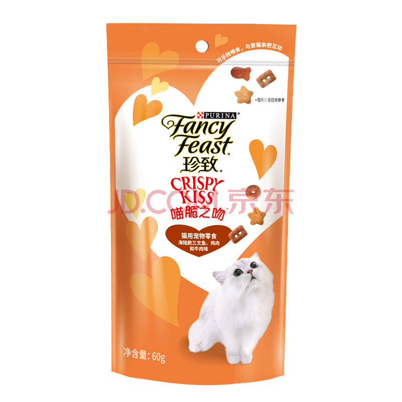 商品相册:珍致 磨牙洁齿猫零食成猫饼干60g 鸡肉三文鱼牛肉味喵脆之吻系列第