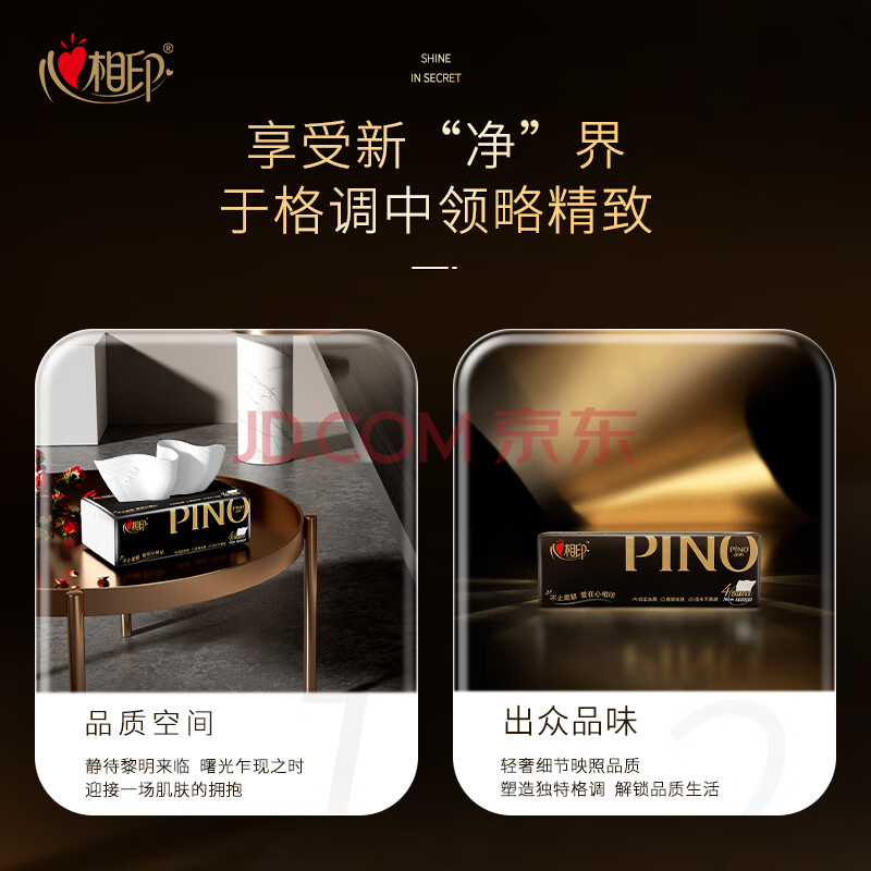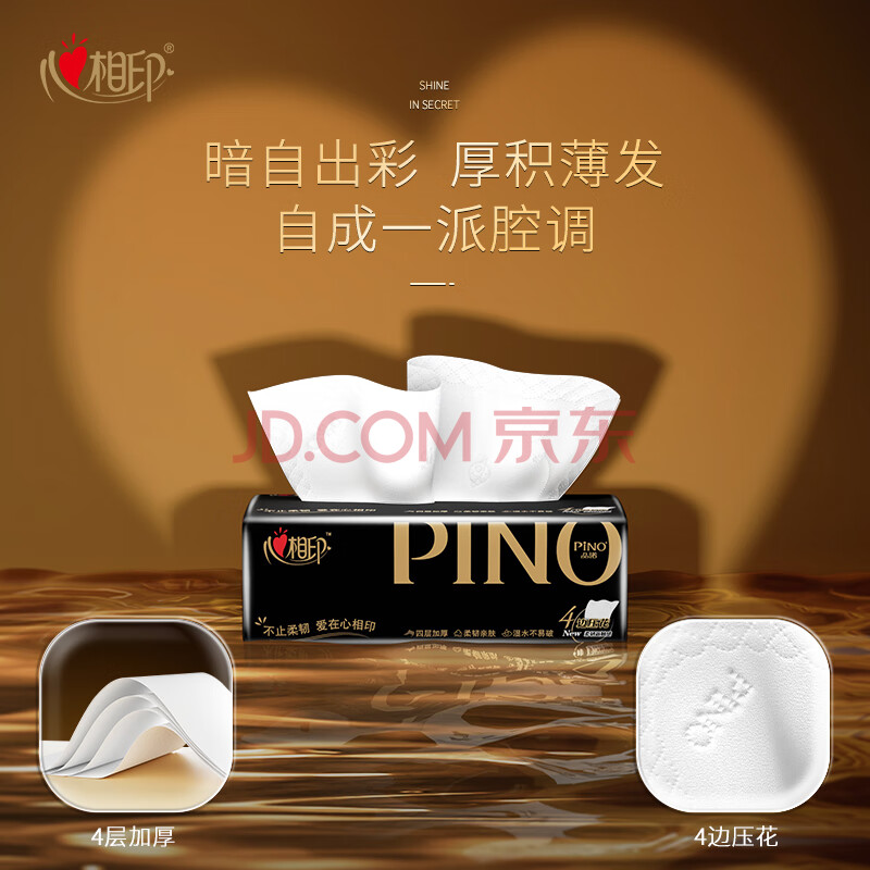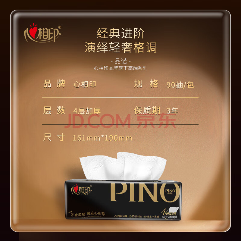 商品相册:心相印抽纸 纸巾 面巾纸品诺4层90抽*16包M码 卫生纸 整箱销售第