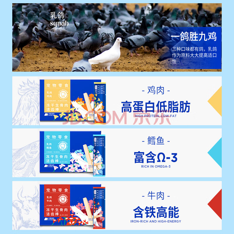 商品相册:LEGENDSANDY蓝氏猫冻干生骨肉洁齿棒磨牙补充营养零食乳鸽混合味30g(12支)第
