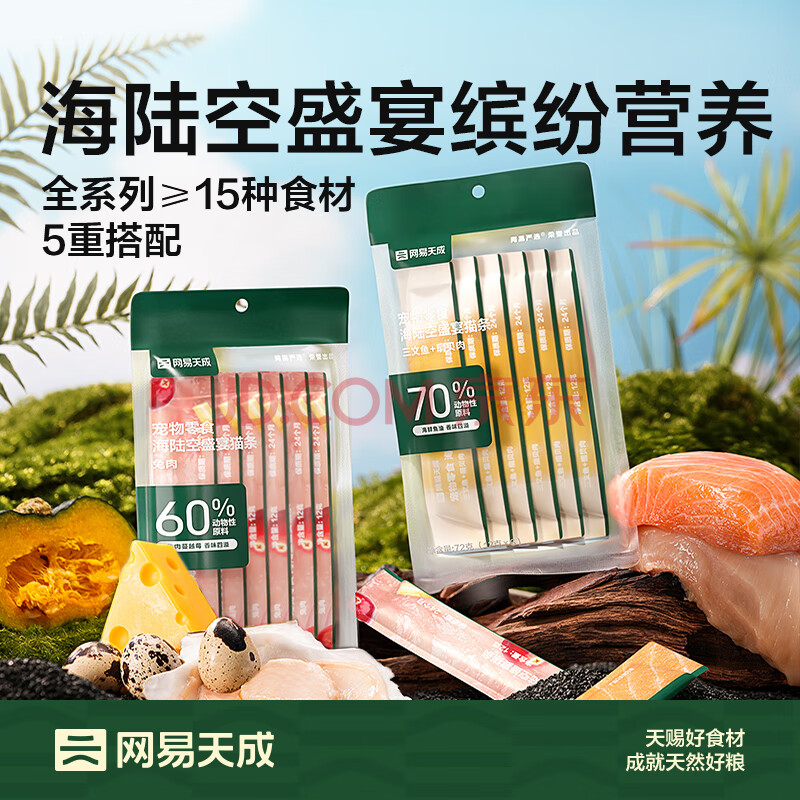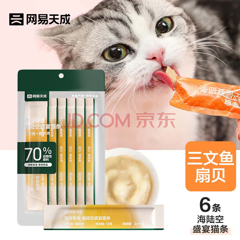 商品相册:网易严选猫零食猫条猫湿粮成猫幼猫通用猫咪零食 三文鱼+扇贝口味12g*6条第