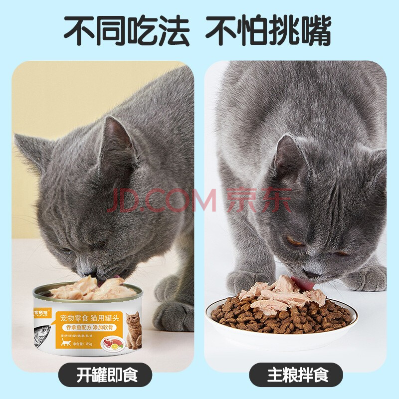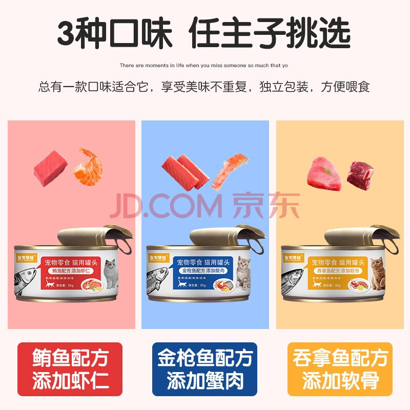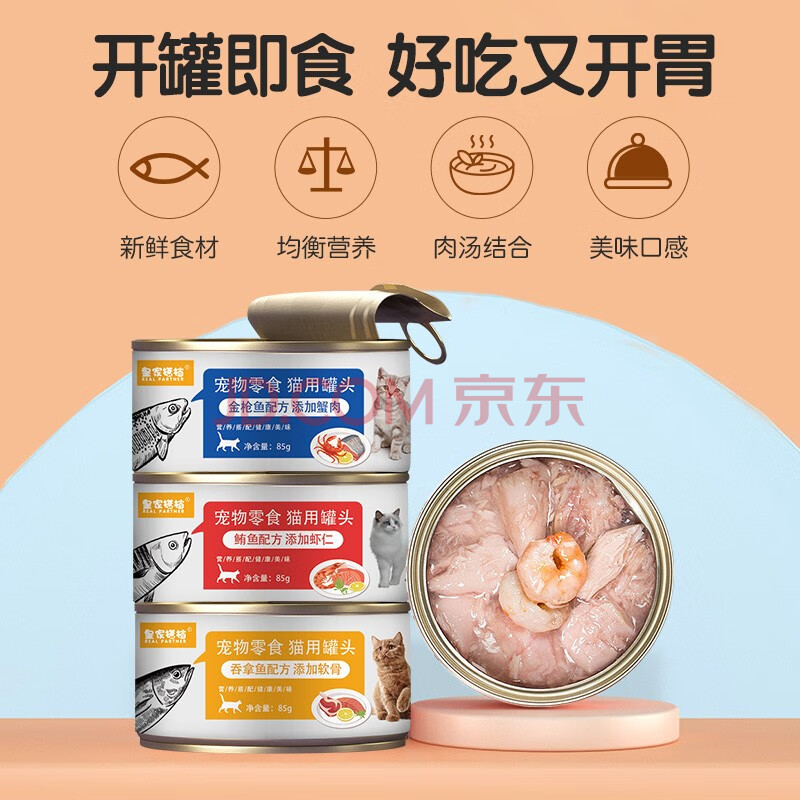 商品相册:皇家搭档猫罐头猫零食成猫幼猫罐头浓汤大肉添加虾仁蟹黄软骨混合85g*12罐第