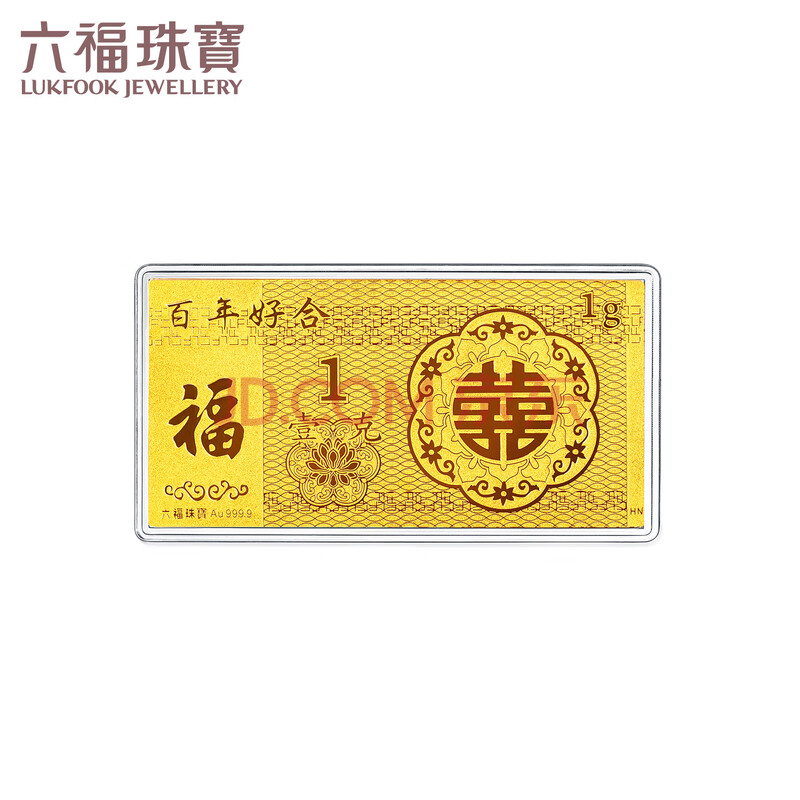 商品相册:六福珠宝 黄金金条百年好合足金囍爱金利是结婚礼物积存金 计价 约1.00克第
