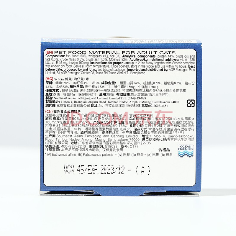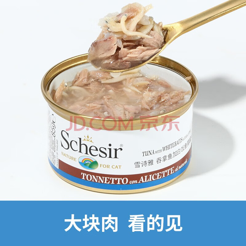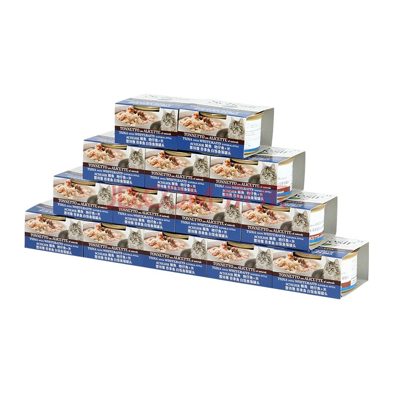 商品相册:雪诗雅 猫罐头吞拿鱼加白饭鱼全年龄段湿粮罐头 水煮系列 85g*14罐装第