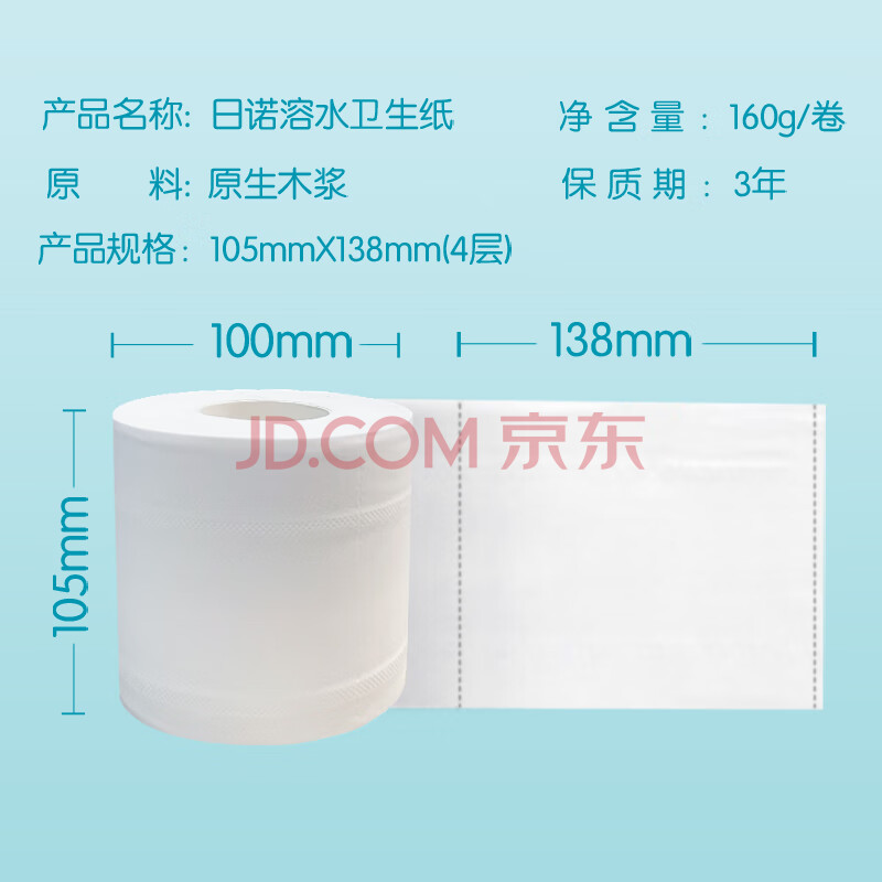 商品相册:日诺(Rinuo)水溶卫生纸可溶水卷纸融水家用有芯卷筒纸厕纸巾4层160克20卷第