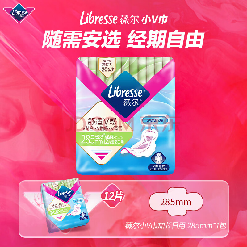 商品相册:薇尔V感超薄贴合透气防漏285mm*12片加长日用卫生巾京东自营姨妈巾第