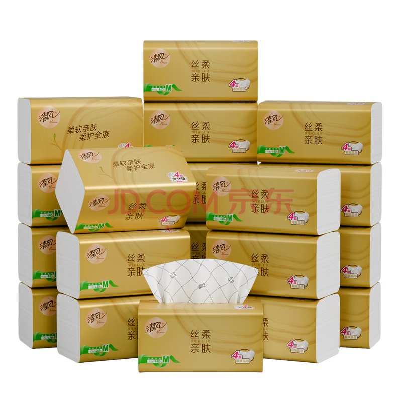 商品相册:清风抽纸 丝柔4层110抽*20包M码 卫生纸巾抽纸家用 面巾纸 整箱装第