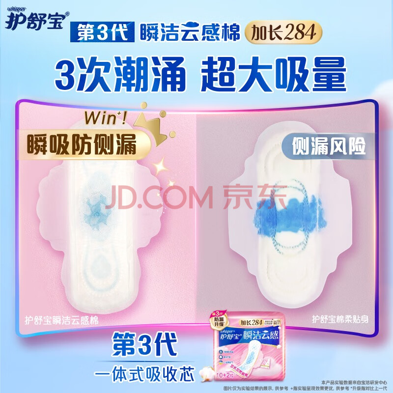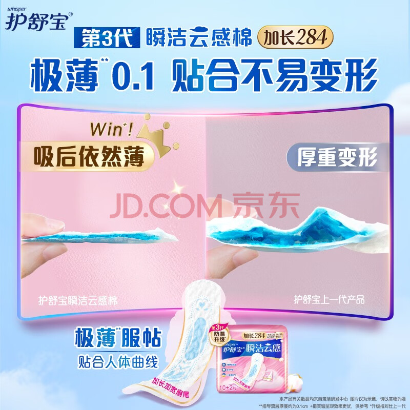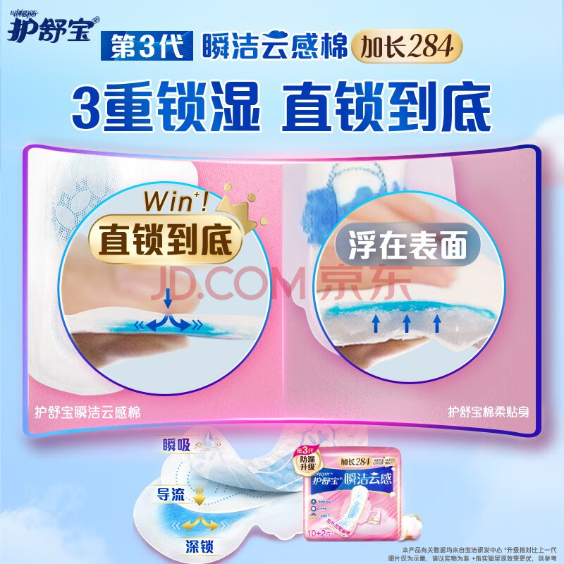 商品相册:护舒宝瞬洁云感棉卫生巾量多日用284mm12片姨妈巾超薄透气京东自营第