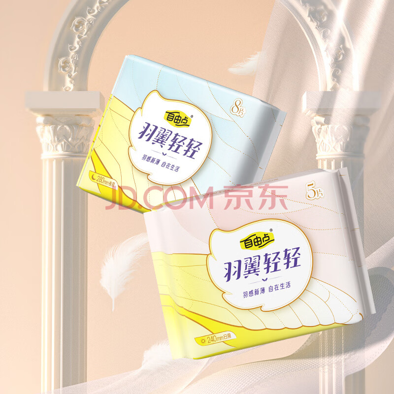商品相册:自由点羽翼轻轻迷你卫生巾赵露思同款卫生巾超薄透气姨妈巾190mm3包36片第
