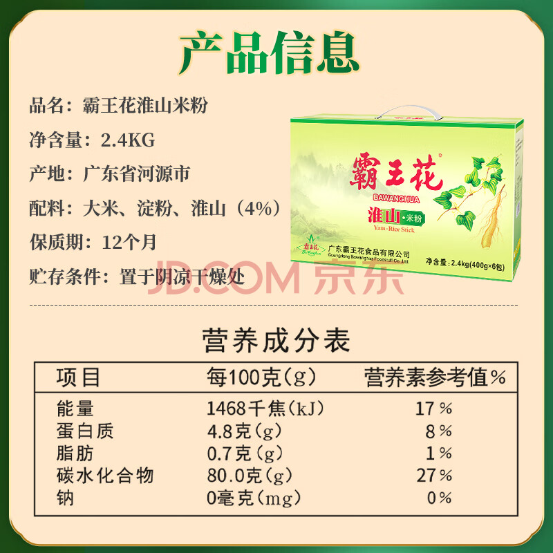 商品相册:霸王花河源淮山米粉米线 4.8斤/箱 独立包装 排粉粉丝 广东客家特产礼盒第