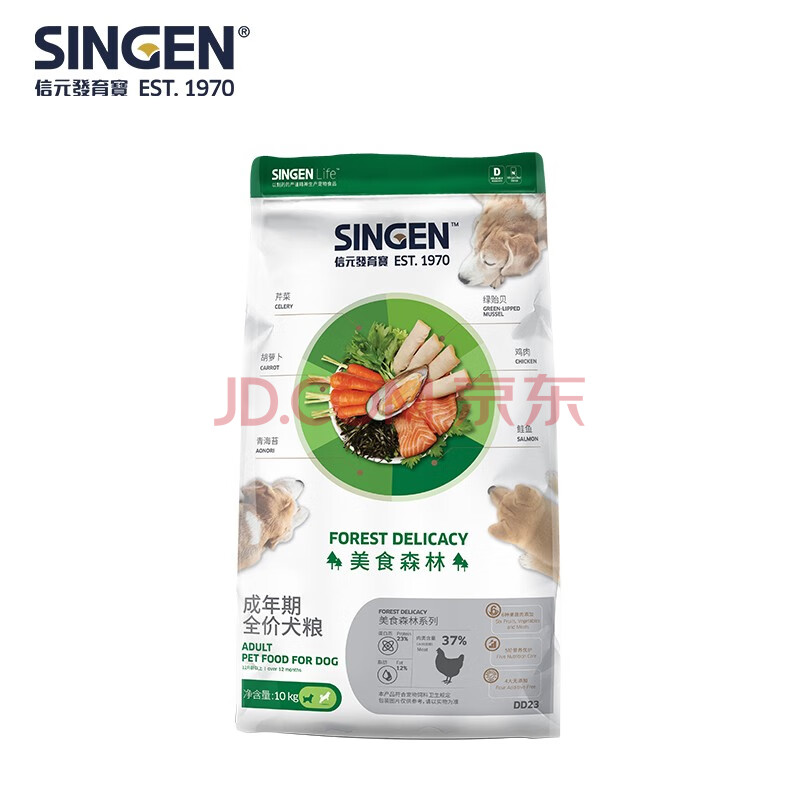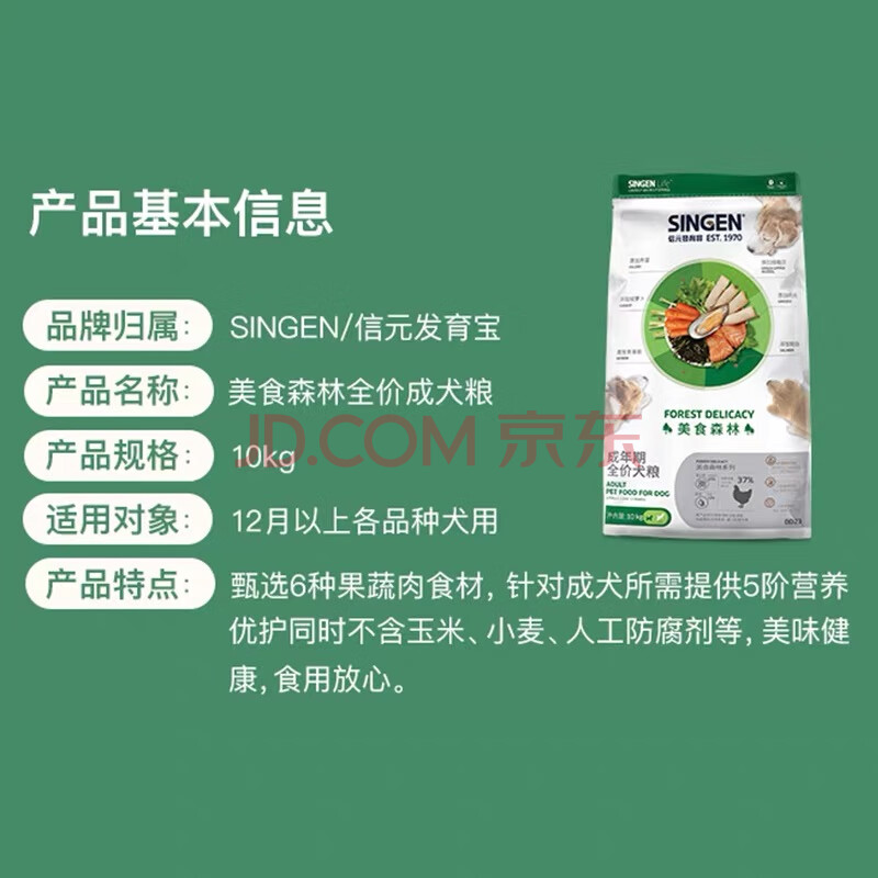 商品相册:信元发育宝(SINGEN)美食森林全价成犬专用粮10kg中大型犬边牧哈士奇通用型狗粮DD23第