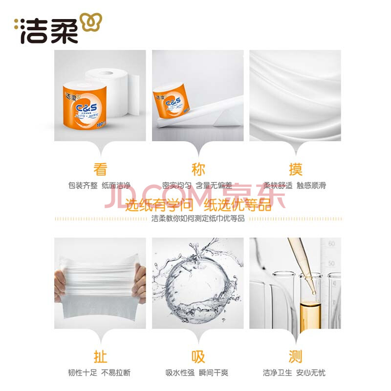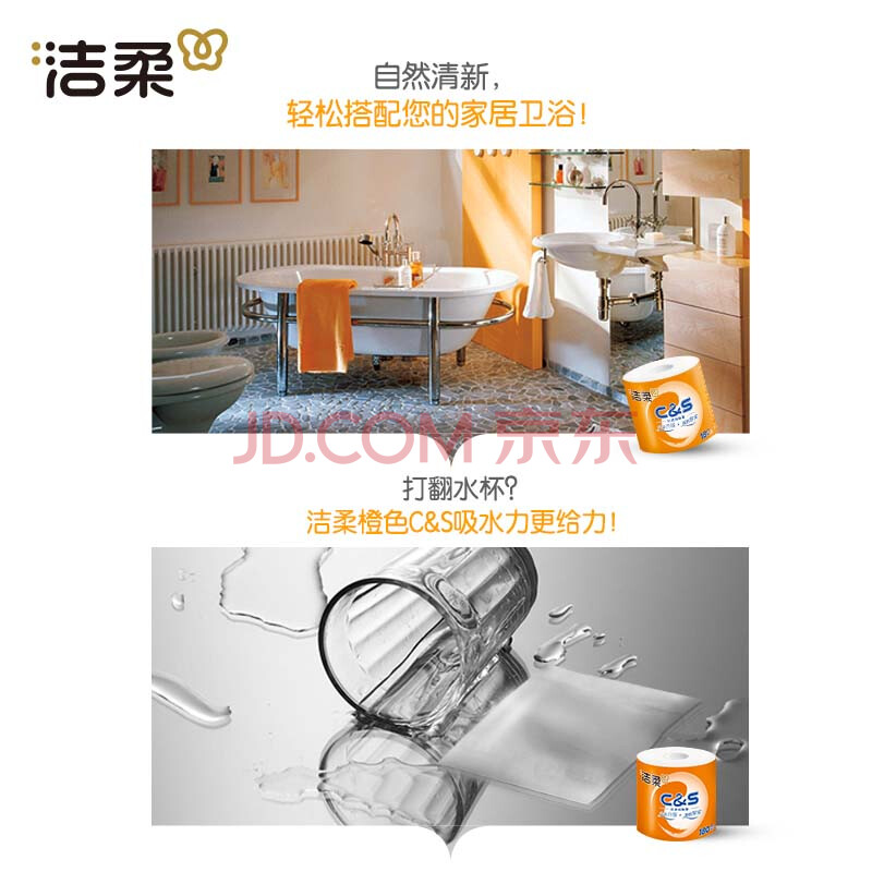 商品相册:洁柔有芯卷纸 阳光橙4层180克*10卷 加厚家用卫生纸卷纸厕纸第