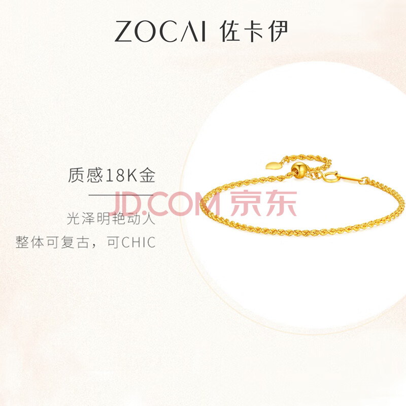 商品相册:佐卡伊18K黄金手链女麻花款手串简约百搭送女友生日礼物 S01650第1张/共5