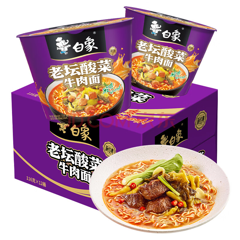 商品相册:白象 方便面 经典老坛酸菜牛肉116g*12桶泡面整箱装第