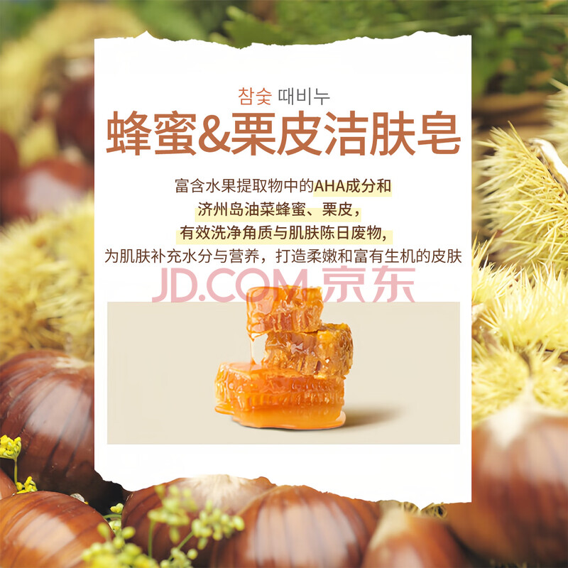 商品相册:無瑾花 韩国进口 花蜜栗皮磨砂洁面皂90g蜂蜜香型 沐浴洗澡皂去角质男女第