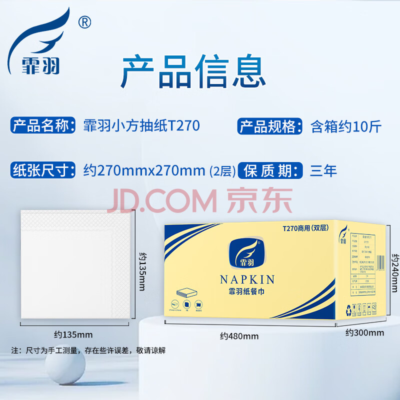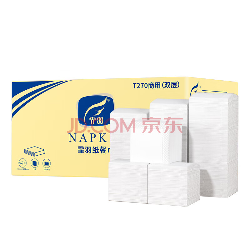 商品相册:霏羽餐巾纸10斤整箱方巾纸270*270双层酒店餐饮饭店用纸巾T270第