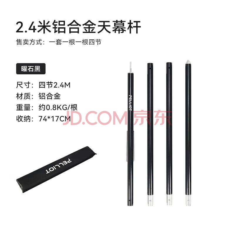 商品相册:伯希和天幕杆铝合金帐篷门厅杆子加粗加厚4节支撑配件16106206黑色2.4m第