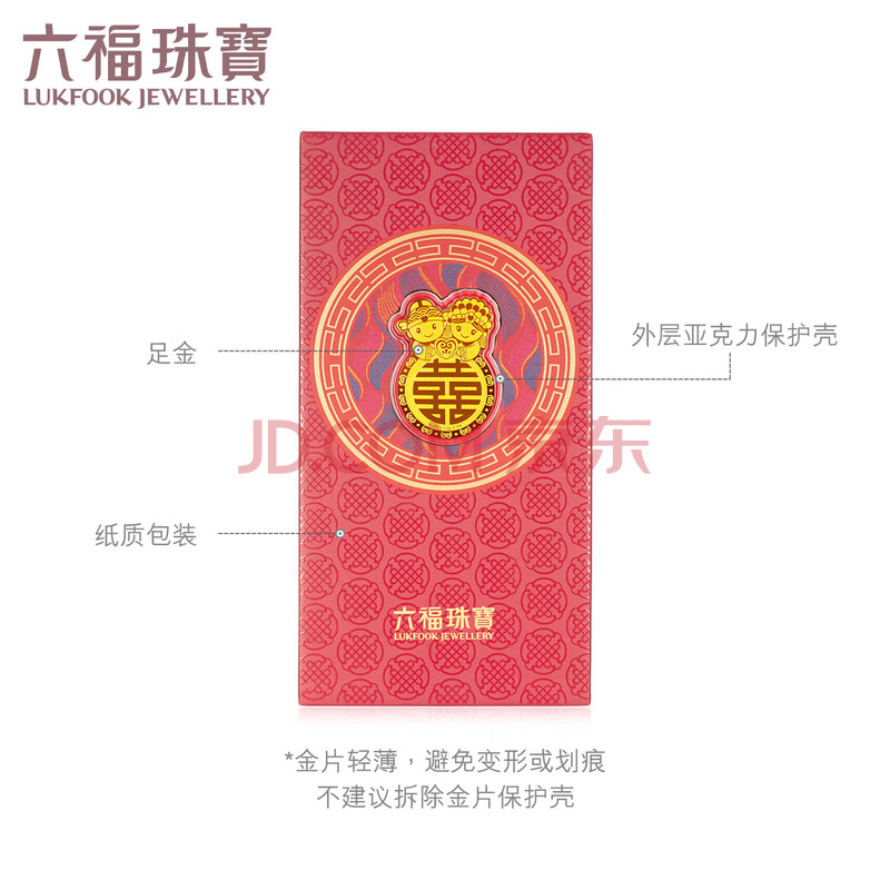 商品相册:六福珠宝 足金囍结良缘黄金金章囍爱结婚礼物 HNA10045 金重约0.20克第1张/共3