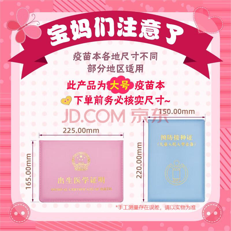 商品相册:DSB 大号预防接种证明保护套 疫苗本(1本套) 大号版 加厚 粉色 宝宝医学出生证明外皮证件皮套第