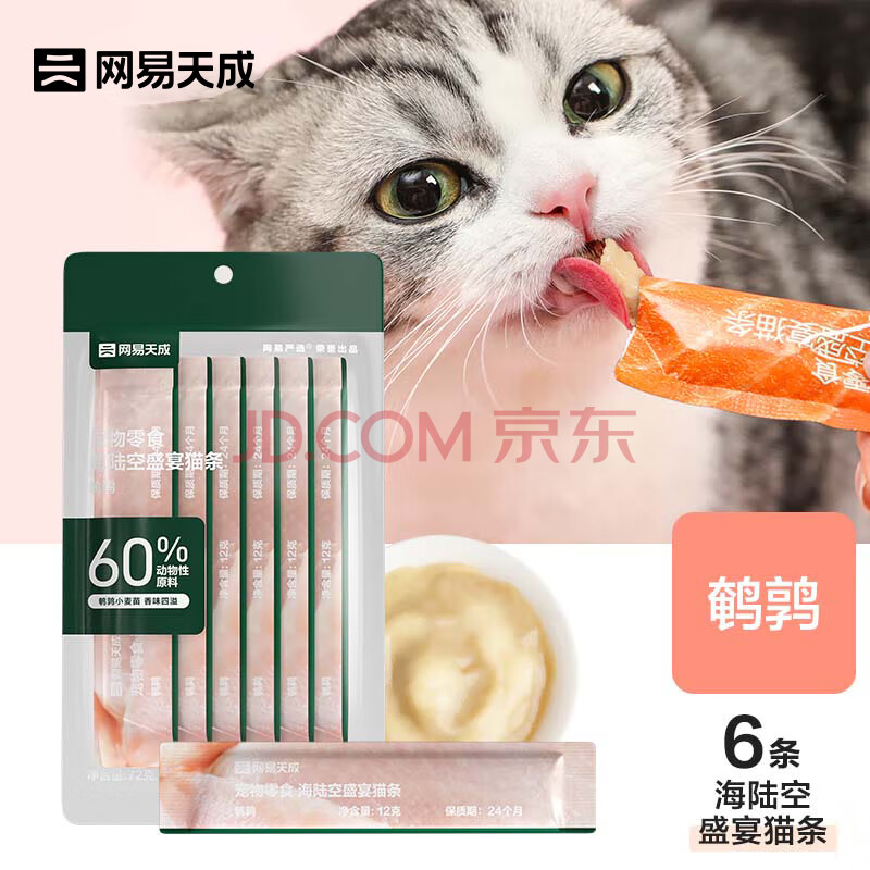 商品相册:网易严选 猫零食猫条猫湿粮 成猫幼猫通用猫咪零食 鹌鹑口味12g*6条第