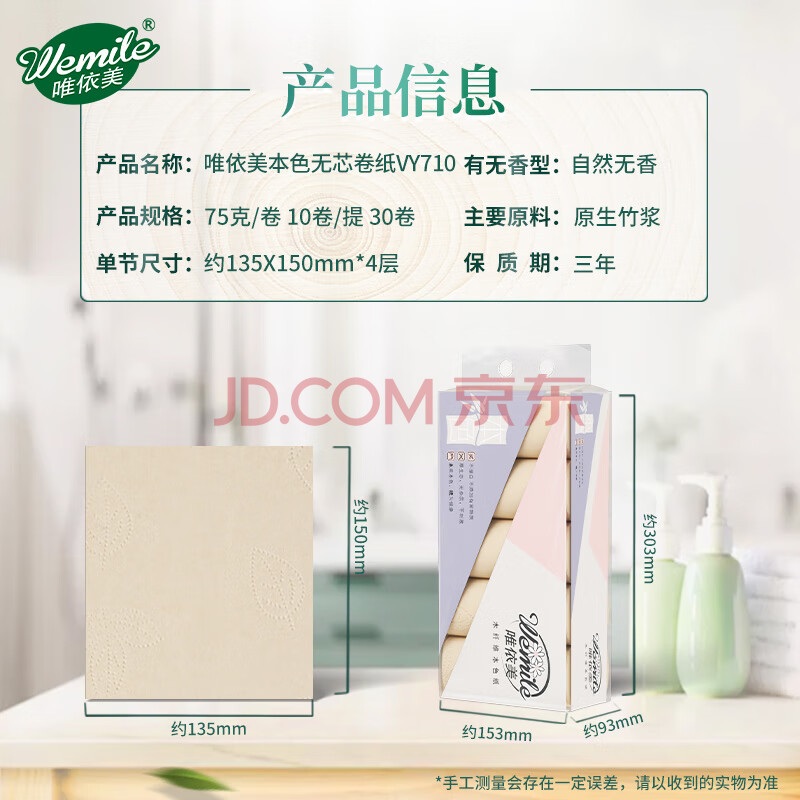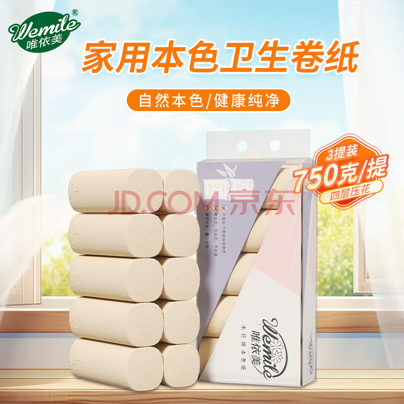 商品相册:唯依美无芯卷纸4层75克*30卷卫生纸本色纸加厚卷纸厕纸家庭实惠装VY710第