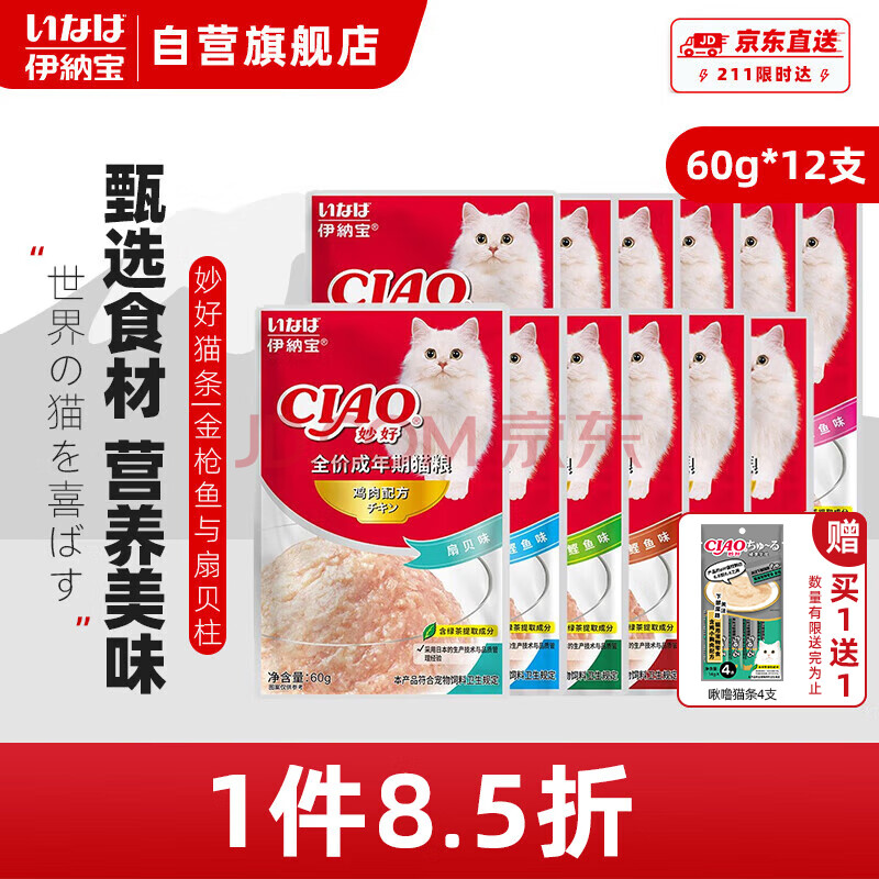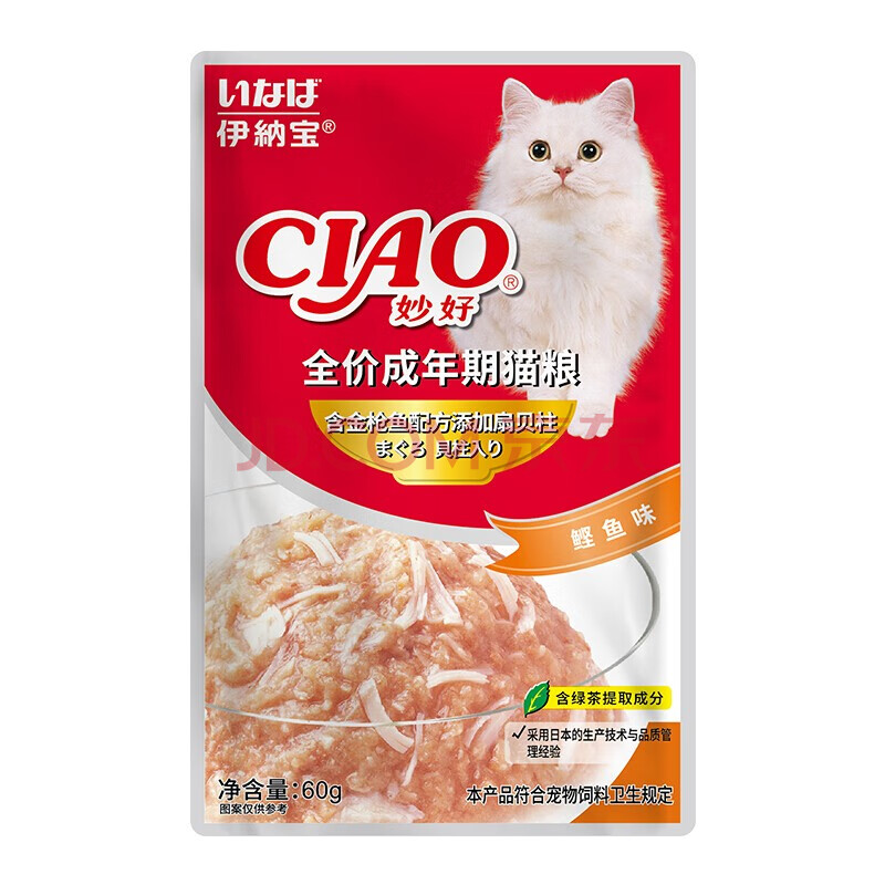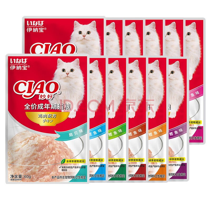 商品相册:伊纳宝猫零食妙好湿粮包金枪鱼与扇贝柱60g*12包 第