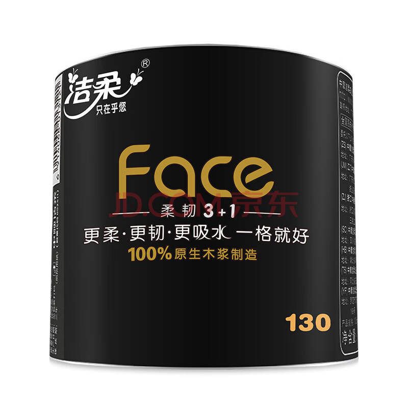 商品相册:洁柔有芯卷纸 黑Face4层130克*27卷 厚韧更耐用 厕纸擦手卫生纸巾整箱第