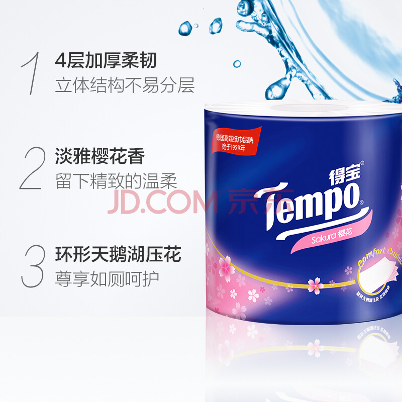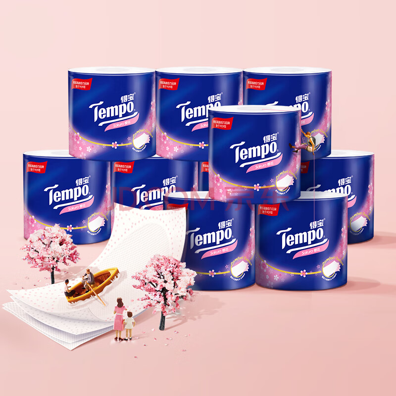商品相册:得宝(TEMPO)一博同款 有芯卷纸 樱花味4层160g*10卷 柔韧可冲散卫生纸卷筒纸第
