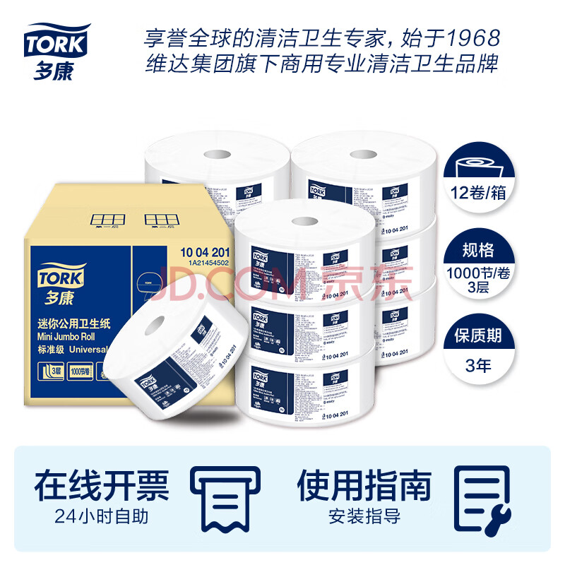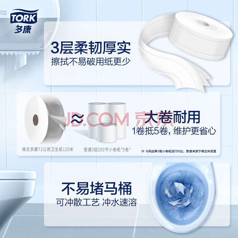 商品相册:多康有芯大卷纸3层120米*12卷 加厚大盘纸纸巾卫生纸 商用酒店办公第