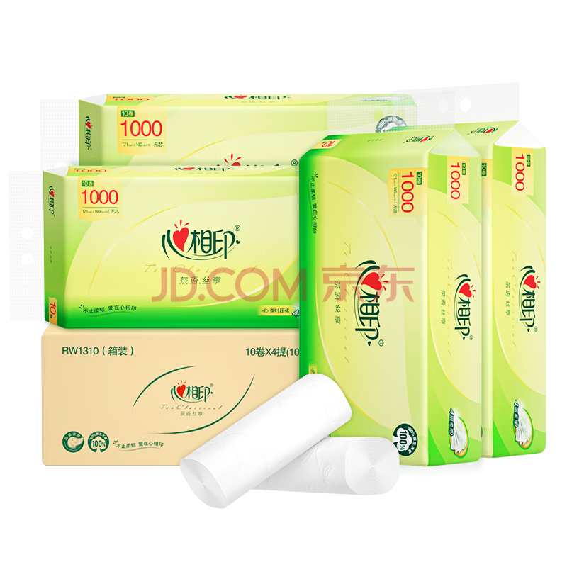商品相册:心相印无芯卷纸 茶语丝享4层100g*40卷 纸巾 卫生纸 整箱(新老交替)第