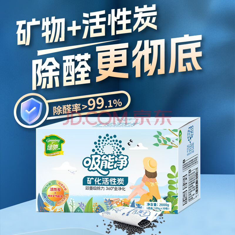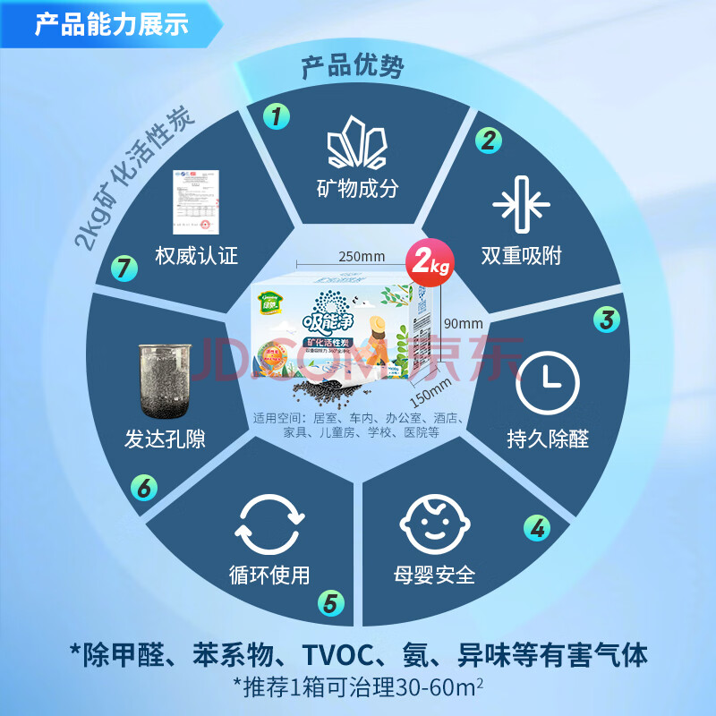 商品相册:绿驰 2kg纳米矿晶活性炭新房车去除甲醛清除剂竹炭包干燥吸异味苯碳包第