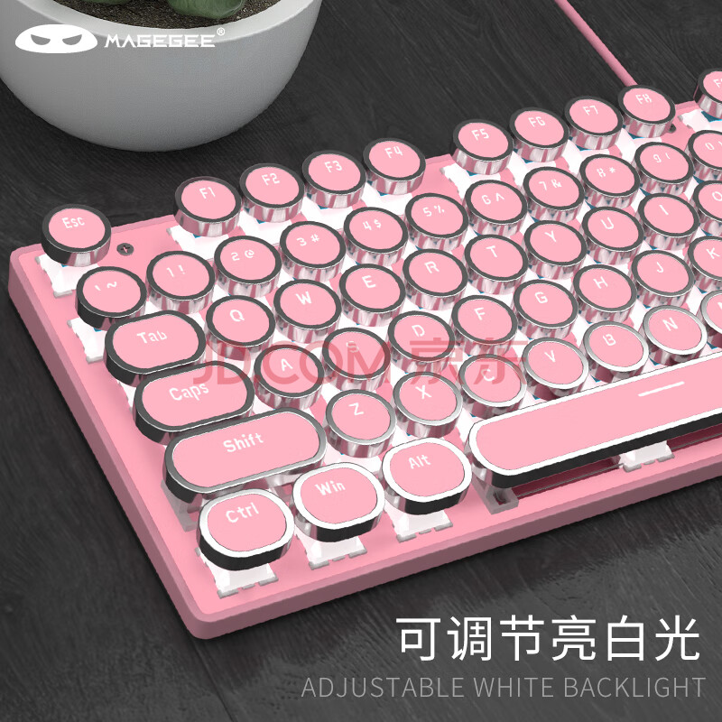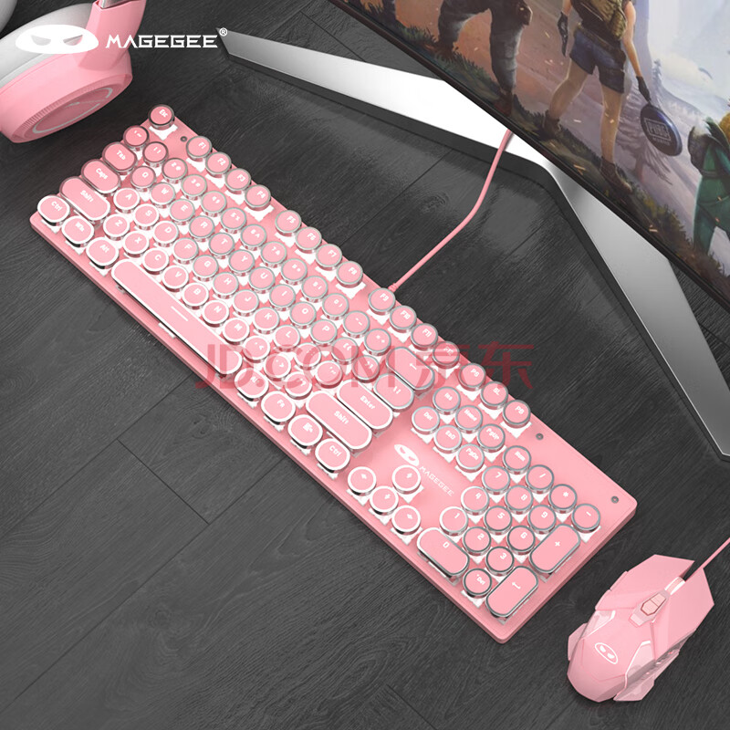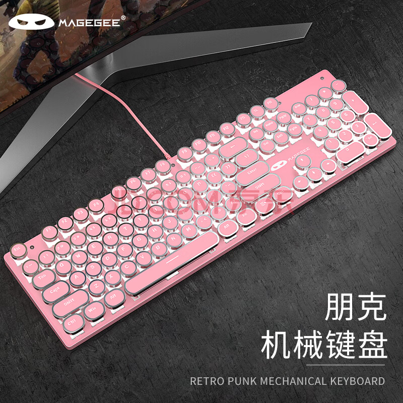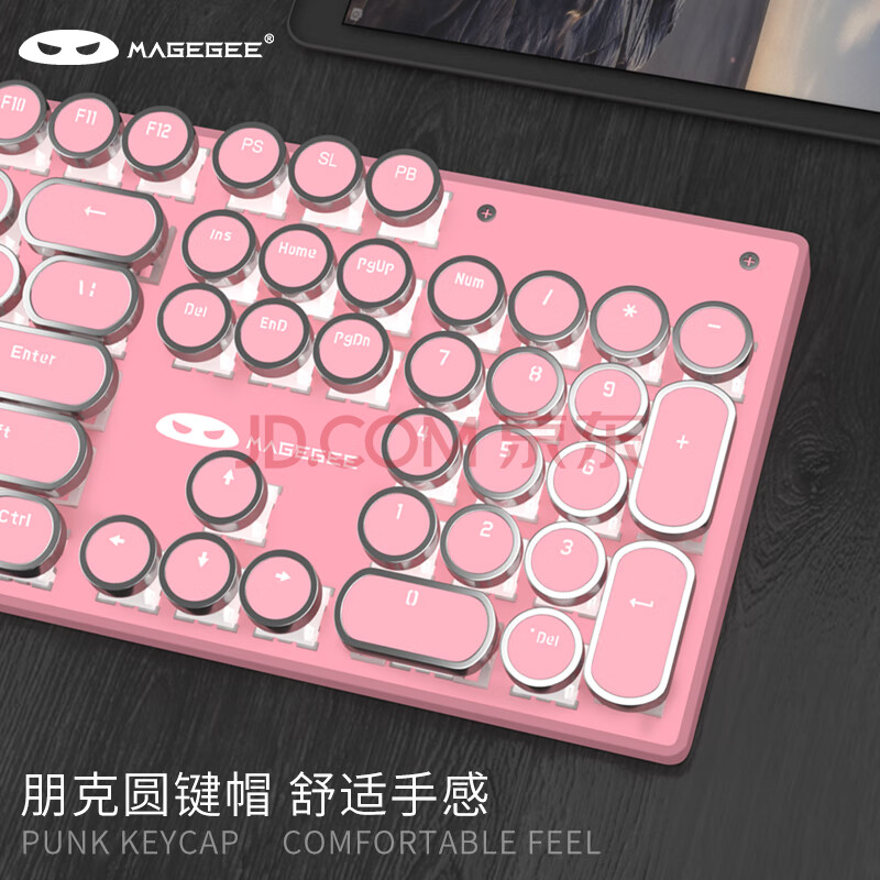 商品相册:MageGee 机械风暴 有线背光键鼠套装 104键圆形键帽键盘 朋克机械键盘鼠标套装 电脑笔记本键鼠 粉色红轴第