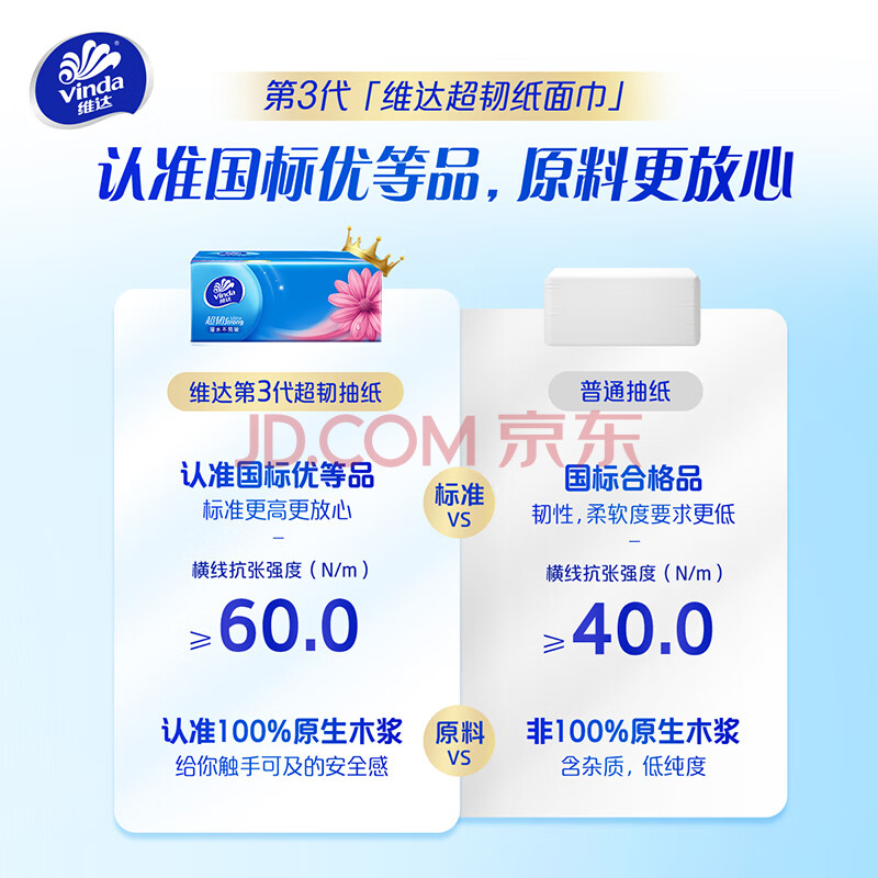 商品相册:维达(Vinda)抽纸 【孙颖莎推荐】超韧3层120抽*30包S码 餐巾纸 新旧随机 整箱第