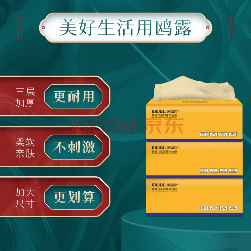 商品相册:鸥露(OULU)抽纸 3层150抽*9包加大XL码 纸巾面巾纸餐巾纸本色纸原生竹浆整箱第